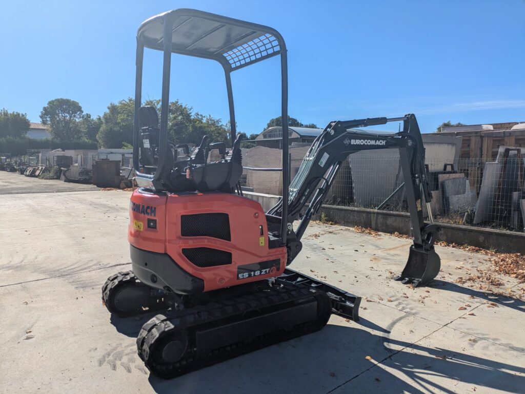 Miniescavatore EUROCOMACH tipo ES18ZT, anno 2018, ore 2000 circa, carro variabile idraulico, tettuccio, 2 benne, certificato CE, manuale uso manutenzione. Macchina tagliandata in ottimo stato generale