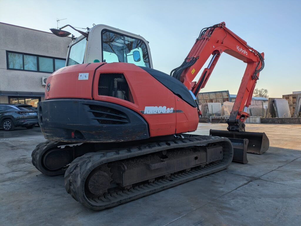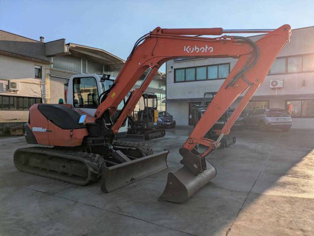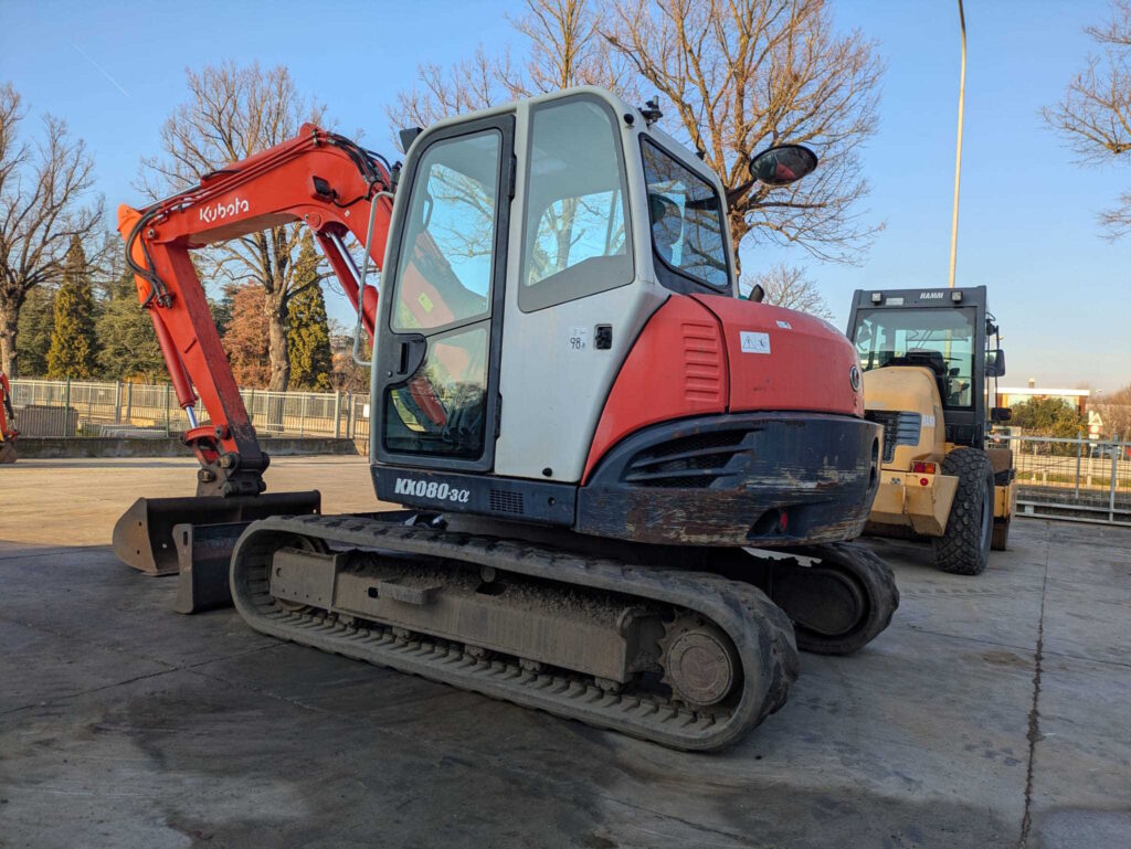 Escavatore cingolato KUBOTA tipo KX080-3alpha, anno 2011, ore 4500 circa, stick lungo , sgancio rapido Klac, tre benne, cabina AC, impianto martello e pinza, CE, manuale d’uso. Macchina in ottimo stato generale.